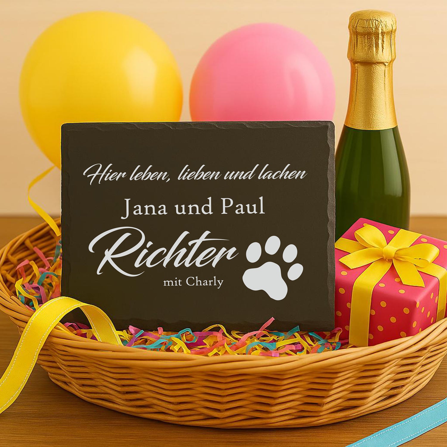 Ob zur Hochzeit, zum Geburtstag oder einfach als liebevolle Aufmerksamkeit – unsere personalisierten Schiefertafeln sind mehr als nur Geschenke. Mit individueller Gravur von Namen, Daten, Zitaten oder Fotos wird jedes Stück zu einem einzigartigen Erinnerungsstück. In verschiedenen Designs und Formaten erhältlich, eignen sich unsere Tafeln perfekt als stilvolle Dekoration oder als emotionales Geschenk für jeden Anlass.