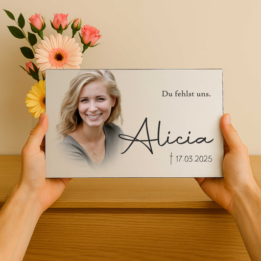 Personalisiertes Gedenkschild mit Foto und Text - Aluverbundplatte 3mm