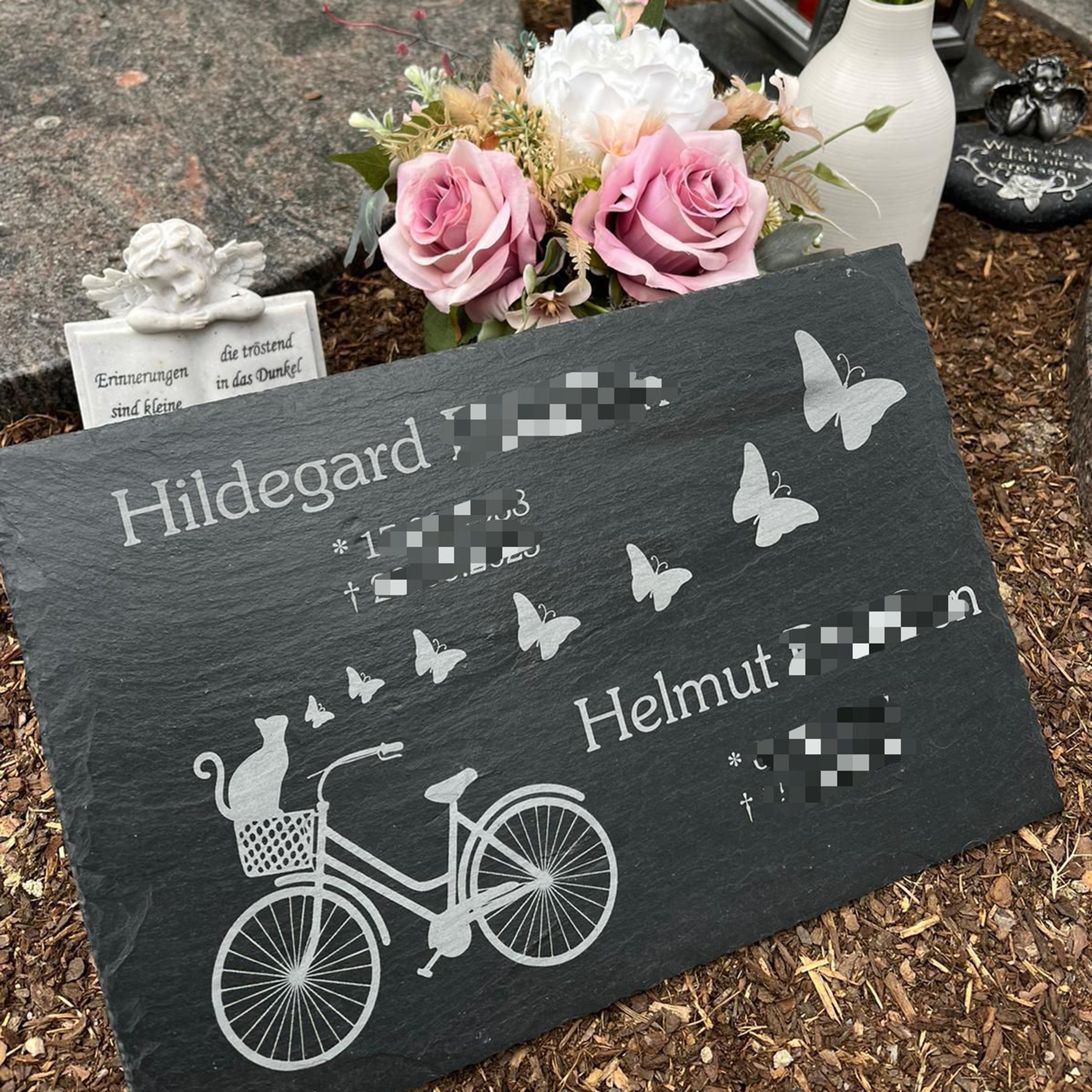 Auf dieser Seite präsentieren wir stolz einige Bilder der Gedenktafeln, die wir für unsere geschätzten Kunden angefertigt haben. Lass dich inspirieren und sehe, wie andere unsere handgefertigten Kunstwerke in ihren Erinnerungsorten eingebunden haben.